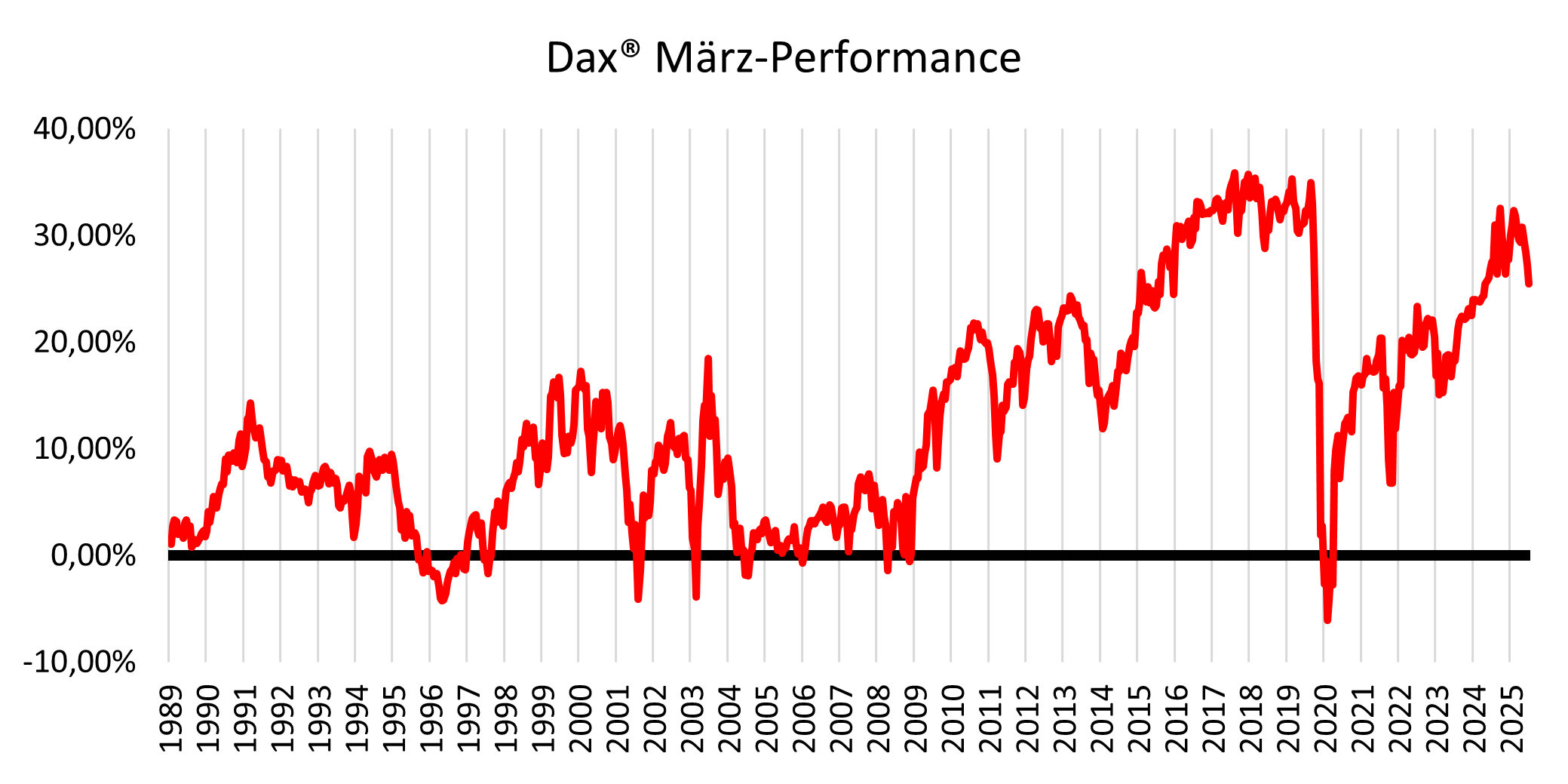 wie bereits aus vergangenen Ausgaben bekannt, widmen wir uns auch in dieser Ausgabe der Verhaltensanalyse des DAX® in einzelnen Monaten seit seiner Einführung im Juli 1988. In dieser Ausgabe blicken wir genauer auf die März-Historie. Was könnte uns im kommenden Monat erwarten?