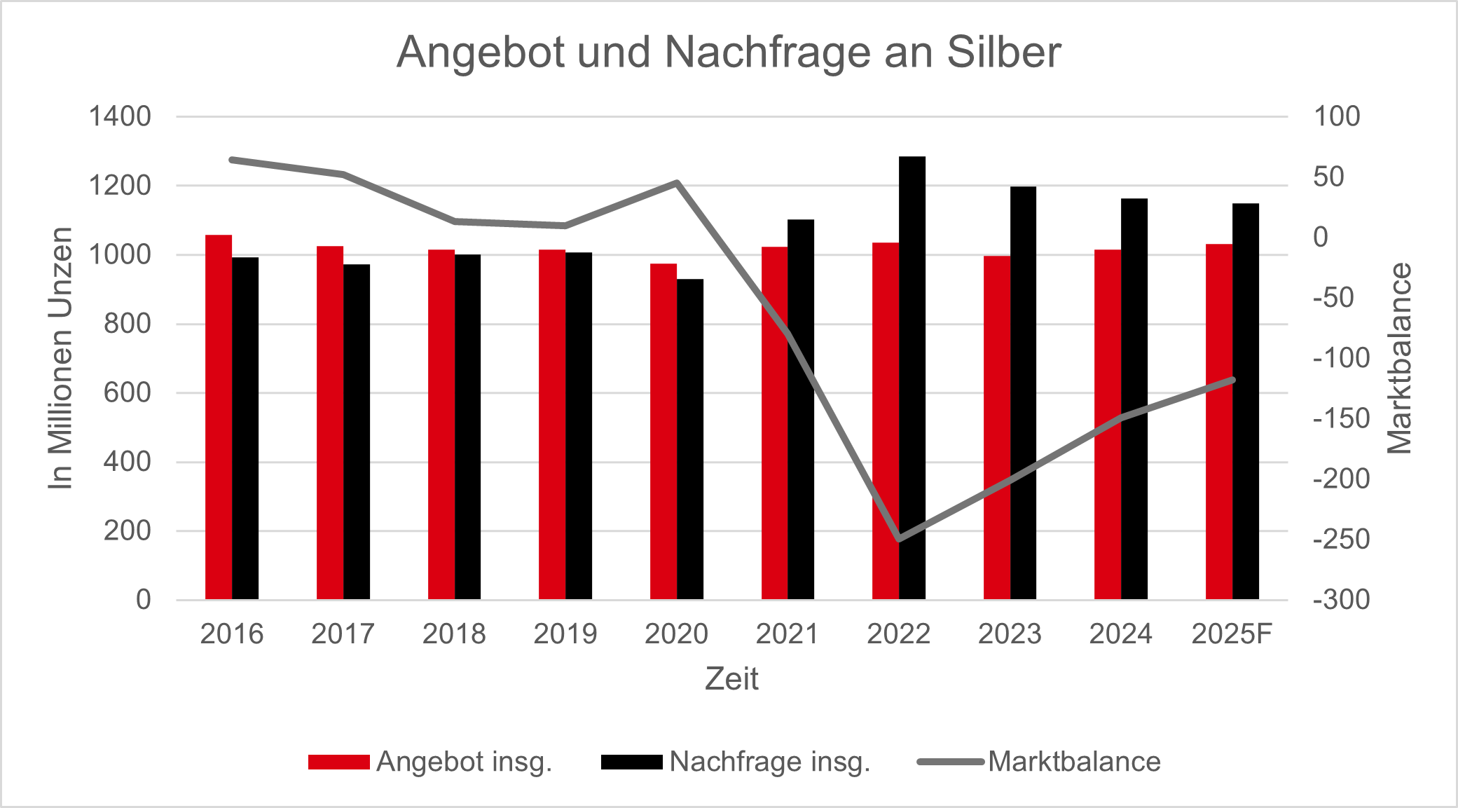Quelle: Eigene Darstellung anhand der Daten des Silver Institutes, Stand: 21.11.2025