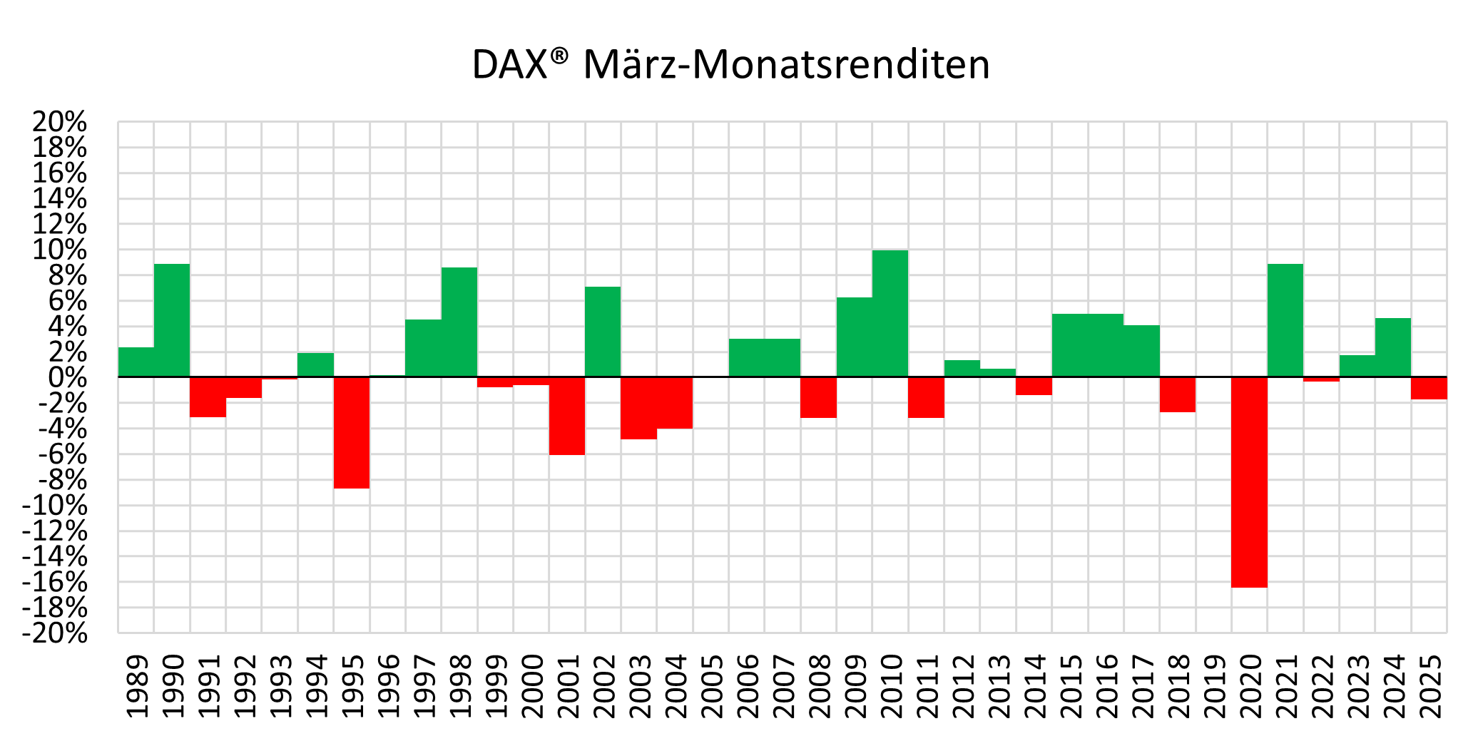 wie bereits aus vergangenen Ausgaben bekannt, widmen wir uns auch in dieser Ausgabe der Verhaltensanalyse des DAX® in einzelnen Monaten seit seiner Einführung im Juli 1988. In dieser Ausgabe blicken wir genauer auf die März-Historie. Was könnte uns im kommenden Monat erwarten?