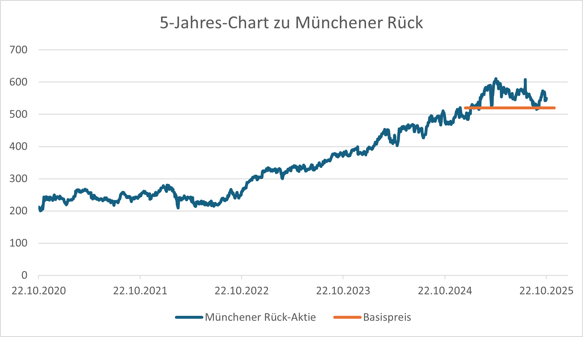Die Aktie des weltweit größten Rückversicherers liegt trotz eines jüngsten Kursrückgangs seit Jahresbeginn noch rund 10 Prozent im Plus. Ursache für die Schwankungen sind unter anderem Sorgen um die Entwicklung der Rückversicherungsprämien. Dennoch zeigt sich die Münchener Rück selbstbewusst: Vorstandsvorsitzender Thomas Blunck betont die attraktiven Geschäftsmöglichkeiten bei der Erneuerung der Rückversicherungsverträge im Januar. Anfang August trafen sich die führenden Rückversicherer in Monte Carlo zum wichtigsten Branchentreffen des Jahres. Münchener Rück und Hannover Rück meldeten Anfang August einen deutlichen Prämienrückgang im ersten Halbjahr 2025 und senkten ihre Umsatzprognosen. Hinzu kommen geopolitische Risiken und makroökonomische Unsicherheiten wie volatile Inflationsraten und Zölle. Besonderes Augenmerk legt die Münchener Rück auf die steigenden Schäden durch Naturkatastrophen: Seit 2020 überschreiten die jährlichen Schäden regelmäßig die Marke von 100 Milliarden US-Dollar; im ersten Halbjahr 2025 waren es bereits über 80 Milliarden Dollar. Im Bereich Cyberrisiken sieht die Münchener Rück große Chancen: Trotz hoher Schäden und wachsendem Risikobewusstsein besteht weiterhin eine erhebliche Versicherungslücke. Der Konzern erwartet, dass sich das Prämienvolumen im Cyberbereich bis 2030 auf rund 30 Milliarden US-Dollar verdoppelt. Positiv aufgenommen wurde zuletzt der Aktienkauf von Finanzvorstand Dr. Christoph Jurecka im Wert von rund 311.880 Euro – ein mögliches Signal des Vertrauens an die Anleger. Für 2025 erwartet die Münchener Rück einen Gesamtumsatz von rund 62 Milliarden Euro (inklusive Ergo) und ein Ergebnis von etwa 6 Milliarden Euro. Mit der Aktienanleihe (WKN: HT8CM2) auf die Münchener Rück-Aktie können Sie von einer maximalen Rendite in Höhe von 8,58 Prozent p.a. profitieren. Diese entsteht durch den Kupon der Anleihe in Höhe von 9,5 Prozent p.a. und dem Kauf unter pari. Angenommen der Kurs des Basiswerts notiert am Bewertungstag der Anleihe auf oder über 520,00 Euro (Basispreis), so wird die Anleihe zum Nennwert, sprich zu 100 Prozent zzgl. der anfallenden Zinsen, zurückgezahlt. Sollte der Kurs unter dem Basispreis von 520,00 Euro notieren, wird am Ende der Laufzeit eine durch das Bezugsverhältnis ausgedrückte Anzahl des Basiswerts geliefert. Die Inhaberschuldverschreibung sichert Sie als Anleger bis zum Bewertungstag (15.05.2026) gegen einen möglichen Kursverlust der Münchener Rück-Aktie von bis zu 9,81 Prozent ab (Verlustschwelle 494,67 Euro). Erst stärkere Kursverluste der Aktie sorgen bei der Aktienanleihe ebenfalls für Verluste (Stand: 28.10.2025). |